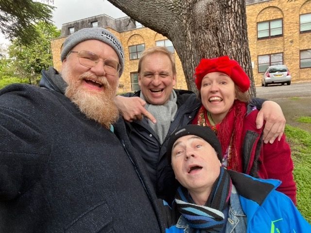 We have lots of fun making our joyful comedy and at times film four projects on a Saturday to create more materials. We share ideas, brainstorm, develop them and film them in a semi-improvised fashion usually in one or two takes at the time. We laugh a lot as we create our joyful comedies.