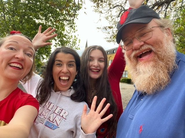 We have lots of fun making our joyful comedy and at times film four projects on a Saturday to create more materials. We share ideas, brainstorm, develop them and film them in a semi-improvised fashion usually in one or two takes at the time. We laugh a lot as we create our joyful comedies.